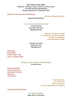 Konzertreise des Kammerchors nach Bedenbostel
