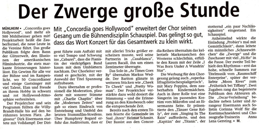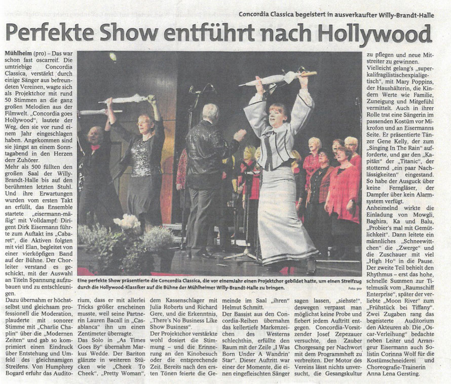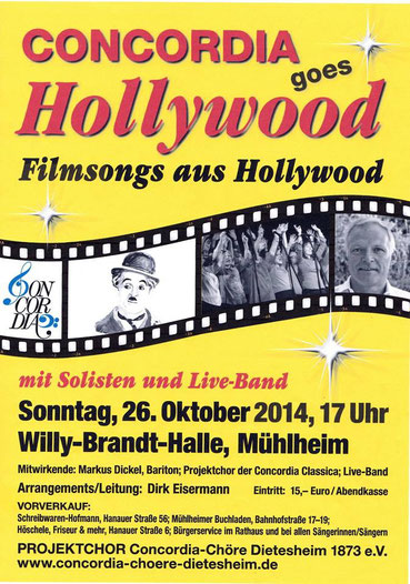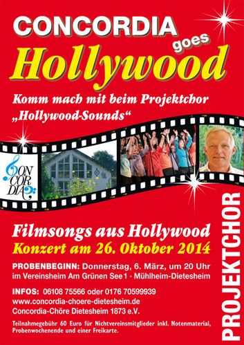 Die erste Chorprobe, zu der wir alle interessierten Stimmen recht herzlich einladen, beginnt am 14.01.2016 um 20:00 Uhr im Vereinshaus Am Grünen See1 in Mühlheim/Dietesheim. An diesem Abend werden Sie von unserem Chorleiter Dirk Eisermann sowie vom Vorstand der Concordia Chöre Dietesheim mit einem „kulinarischen Entrée“ begrüßt und Sie erhalten dann auch weitere Informationen, die Sie sicherlich zum Mitsingen im Projektchor animieren werden. Wir freuen uns auf jede Stimme und wissen, dass es ein wunderbares Erlebnis sein wird wenn wir alle am 05.November 2016 auf der Bühne der Willy-Brandt-Halle stehen und das Publikum allen Akteuren den wohlverdienten Beifall spendet.